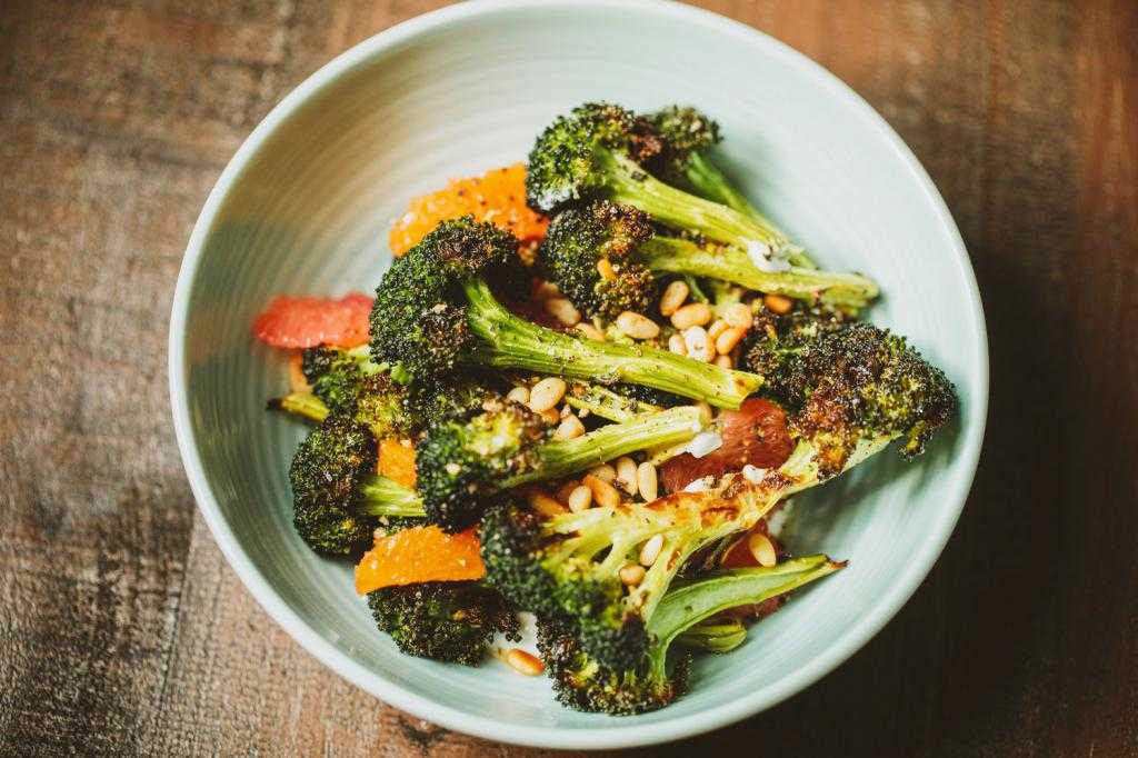 - Соцветия брокколи разрезать вдоль на четвертинки.
