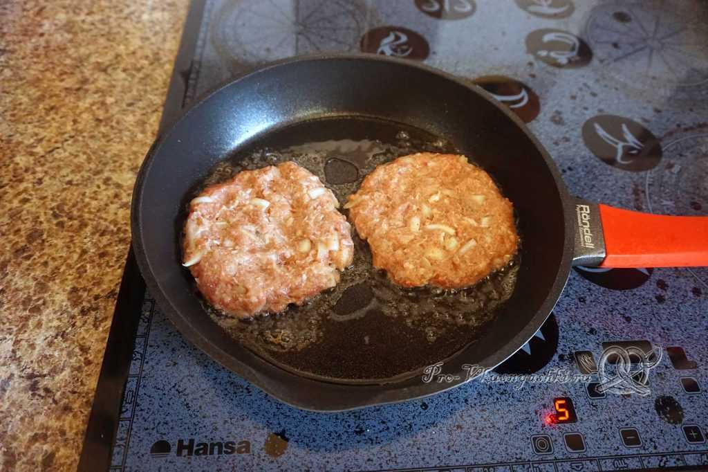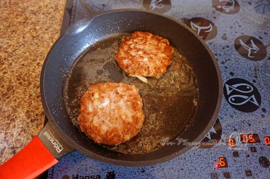В процессе жарки ни в коем случае нельзя надавливать на котлеты. В противном случае из них вытечет сок, и они станут сухими.