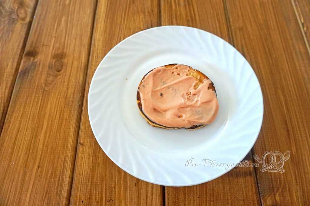 Начнем собирать гамбургер. Нижнюю часть булки смазываем соусом (1-2 ст.л).