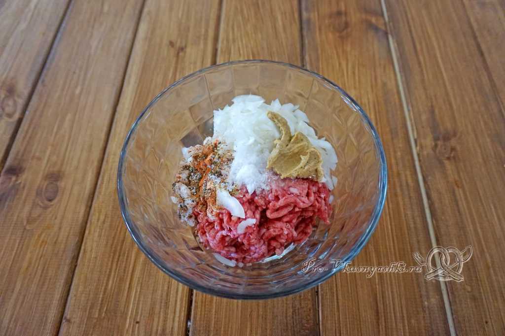 Добавляем его в миску к остальным ингредиентам для котлет (фарш, соль, специи, горчица).
