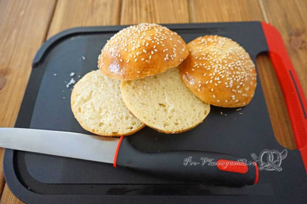 Для получения ровной золотистой окраски по всей поверхности среза, слегка придавите половинки булочек рукой в течение 1-2 мин.