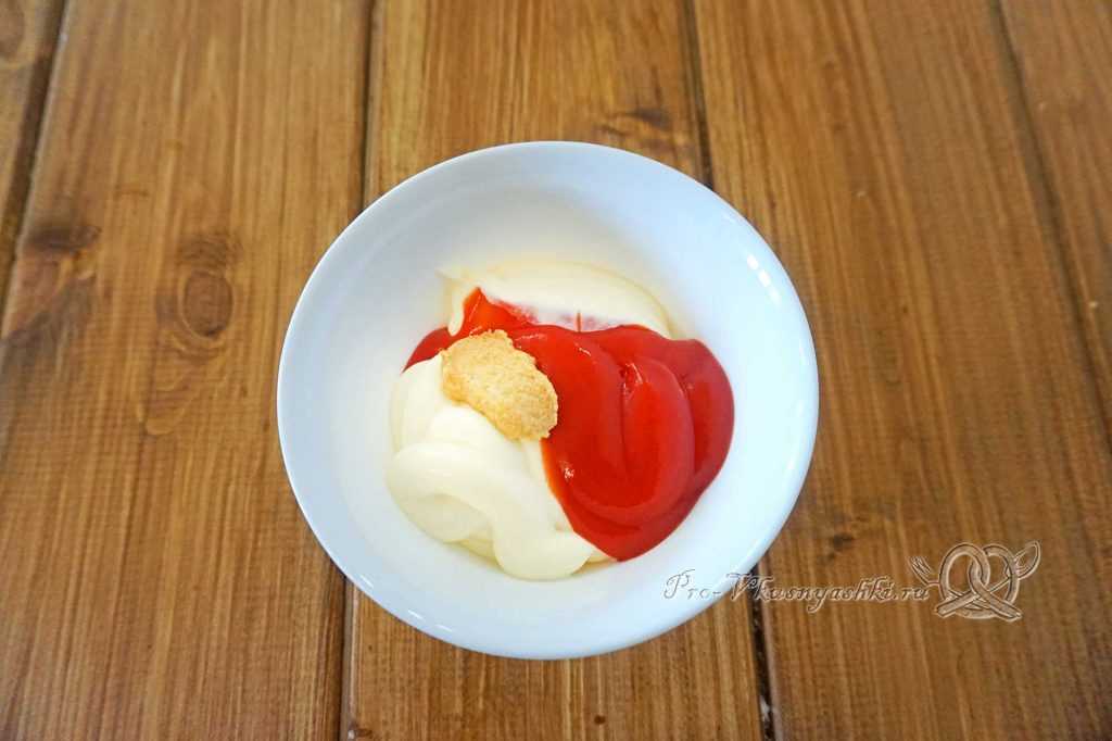 Горчицу смешиваем с кетчупом в отдельной мисочке.