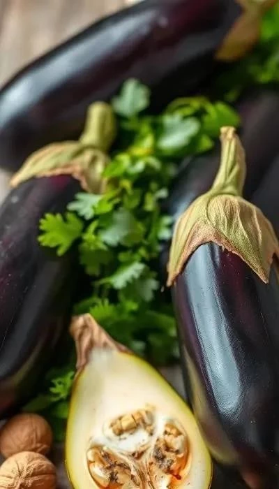 Ингредиенты для приготовления котлет из баклажанов: баклажаны (1 кг), мягкий сыр (150 г), яйцо (1 шт.), панировочные сухари (2-3 ст.л.), чеснок (2-3 зубчика), петрушка (пучок), соль, перец по вкусу. Для орехового соуса: грецкие орехи (100 г), чеснок (1-2 зубчика), кинза (пучок), лимонный сок (1 ст.л.), вода (2-3 ст.л.), соль по вкусу. Важно выбирать качественные баклажаны, без повреждений и признаков порчи. Если баклажаны горчат, их необходимо предварительно замочить в соленой воде на 30-60 минут.
