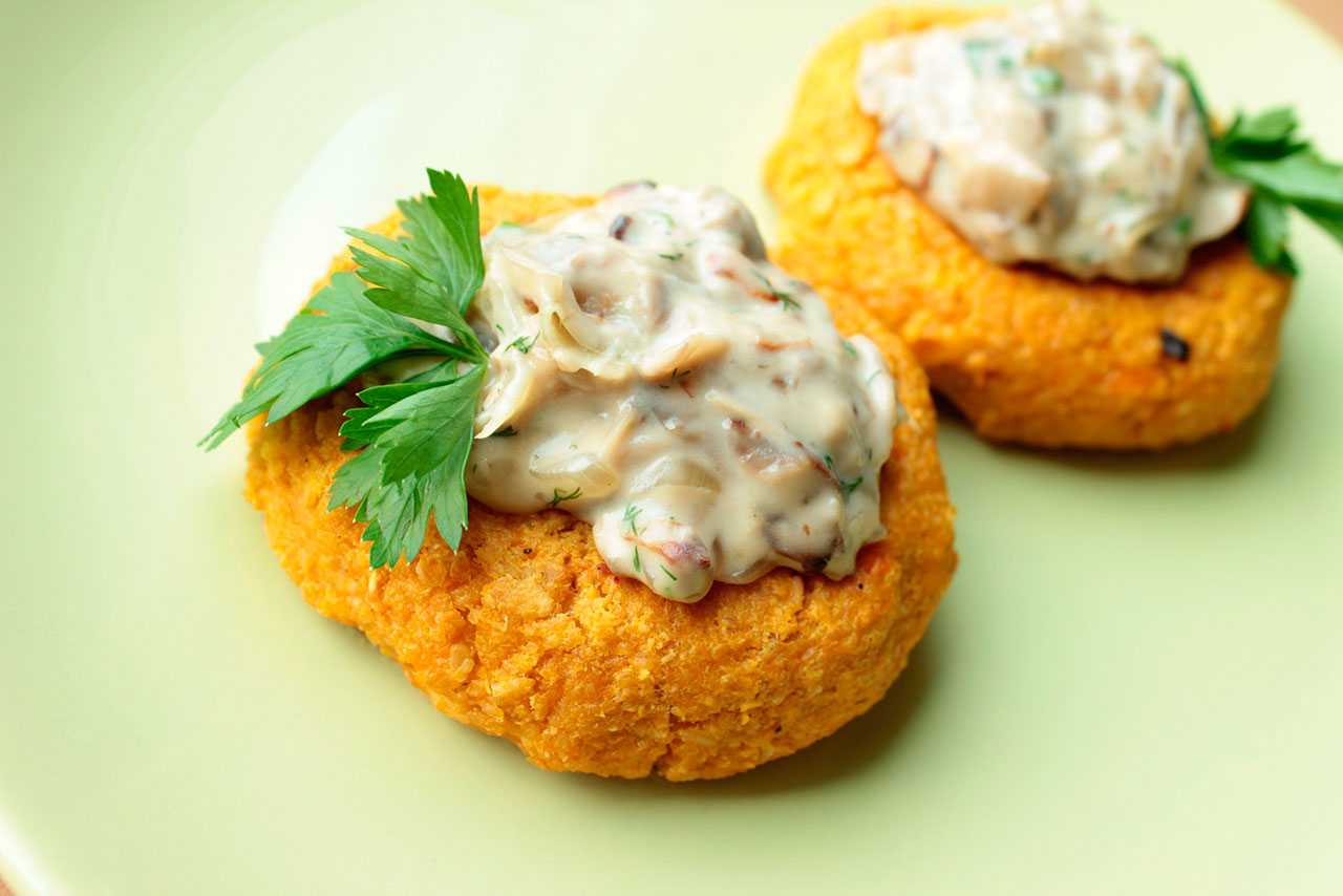 Напоследок хотелось бы рассказать о рецепте из одного из самых доступных и хорошо знакомых нам продуктов. Речь пойдет о котлетах из моркови. Эта рыжая красавица обладает массой полезных свойств. Например, в ней содержится большое количество каротина, которое при термическое обработке только растет. Если добавить к морковному пюре лук, овсяные хлопья и приправу, можно приготовить изумительные котлеты, которые даже не нужно обжаривать – это лакомство легко и просто готовится в духовом шкафу. Ну а в качестве пряного дополнения рекомендуется приготовить вкуснейший соус на основе грибов.