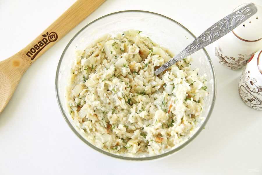 - Вторую луковицу измельчить, как и первую, и пассеровать на сливочном масле до прозрачности. Затем подождать, пока остынет.