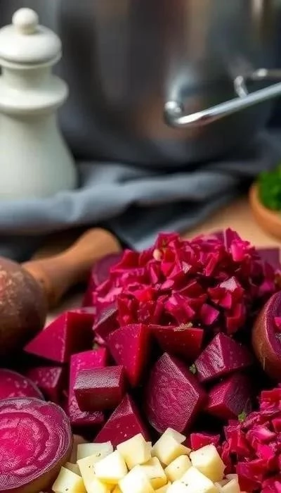 Картофель также необходимо отварить до мягкости. После варки картофель следует размять в пюре. Лук можно обжарить до золотистого цвета или использовать сырым, в зависимости от ваших предпочтений. Обжаренный лук придаст котлетам более насыщенный вкус. Фарш смешать с молоком, картофелем, добавить мелко нарезанную свеклу, асафетиду, муку, соду и специи.