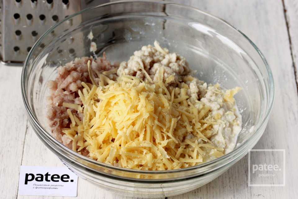 Твёрдый сыр натираем на крупной тёрке и добавляем в фарш.