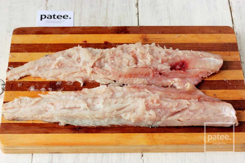 Промываем тушку рыбы (в данном случае используется хек) и отделяем филе от хребта.