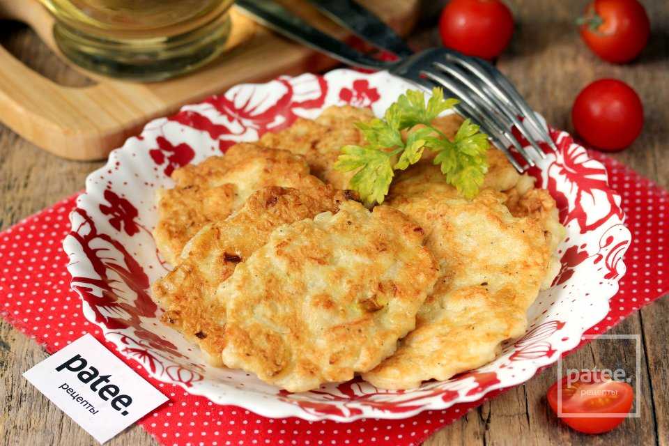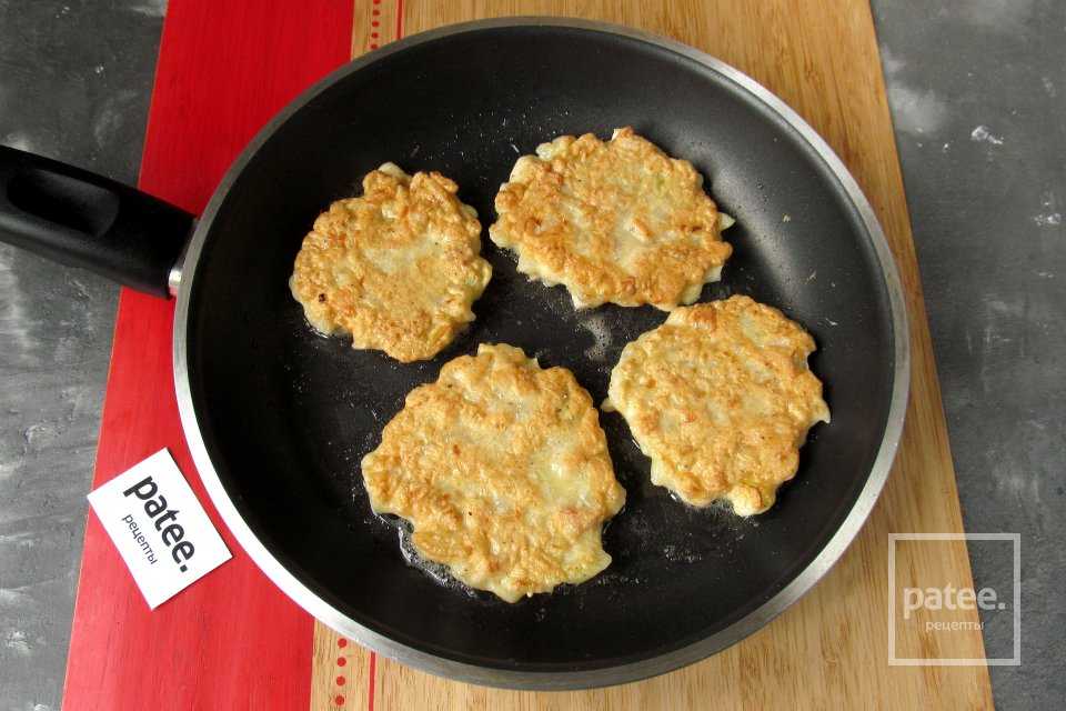 - Накладывать смесь ложкой в горячее масло, поджарить 5 минут, далее подрумянить второй бок.