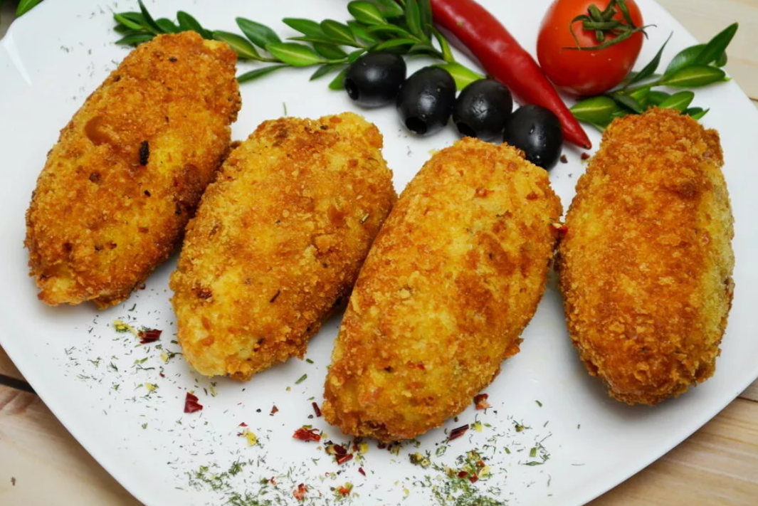 Отличный вариант закуски для встречи с лучшими друзьями за бутылочкой «пенного» напитка! Рецептура представляет собой разновидность котлеты по-киевски на латиноамериканский манер.
