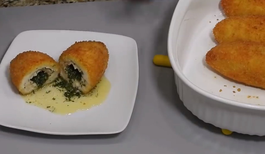 Если котлета сделана правильно, растопленное масло должно вытекать при разрезании. Благодаря ему грудка получается сочная, очень вкусная.