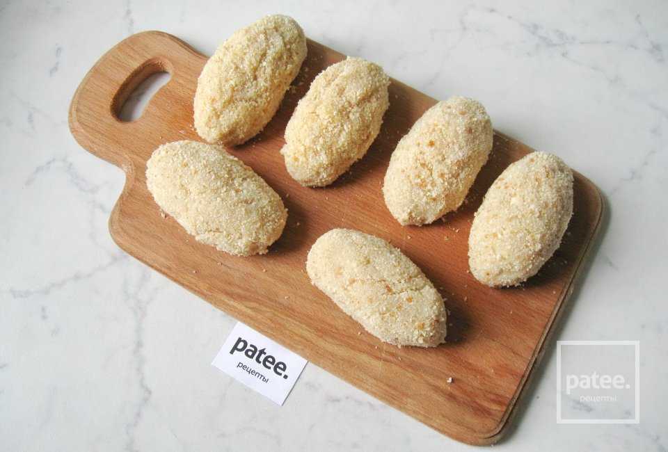 - Затем битки обмакивают во взбитую яичную смесь, а после обваливают в толчёных сухарях.