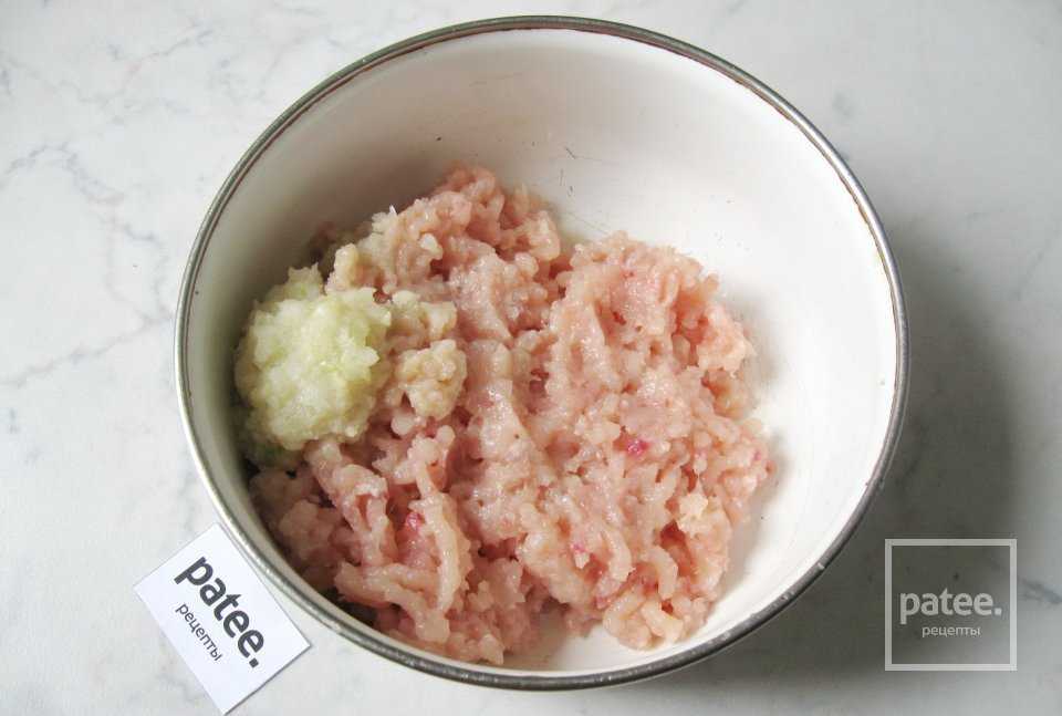 - Вначале мясо вместе с луковицей необходимо перемолоть на мясорубке.