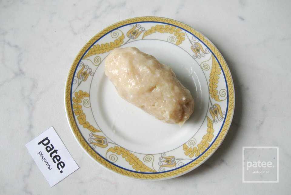 Сначала из фарша формируются самые обычные куриные котлетки. Руки при этом смачиваются прохладной водой.