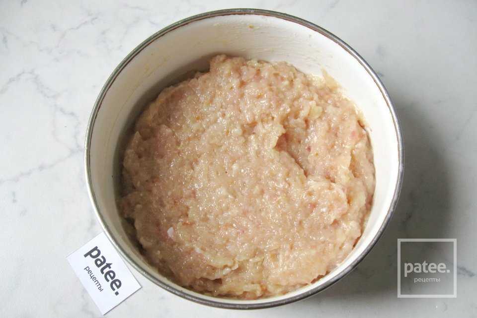 Куриное филе пропускаем через мясорубку вместе с очищенной луковицей, чтобы получился фарш.