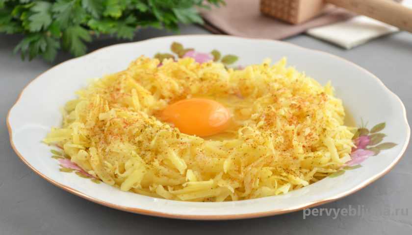Вариант из говяжьего фарша в картофельной стружке на сковороде