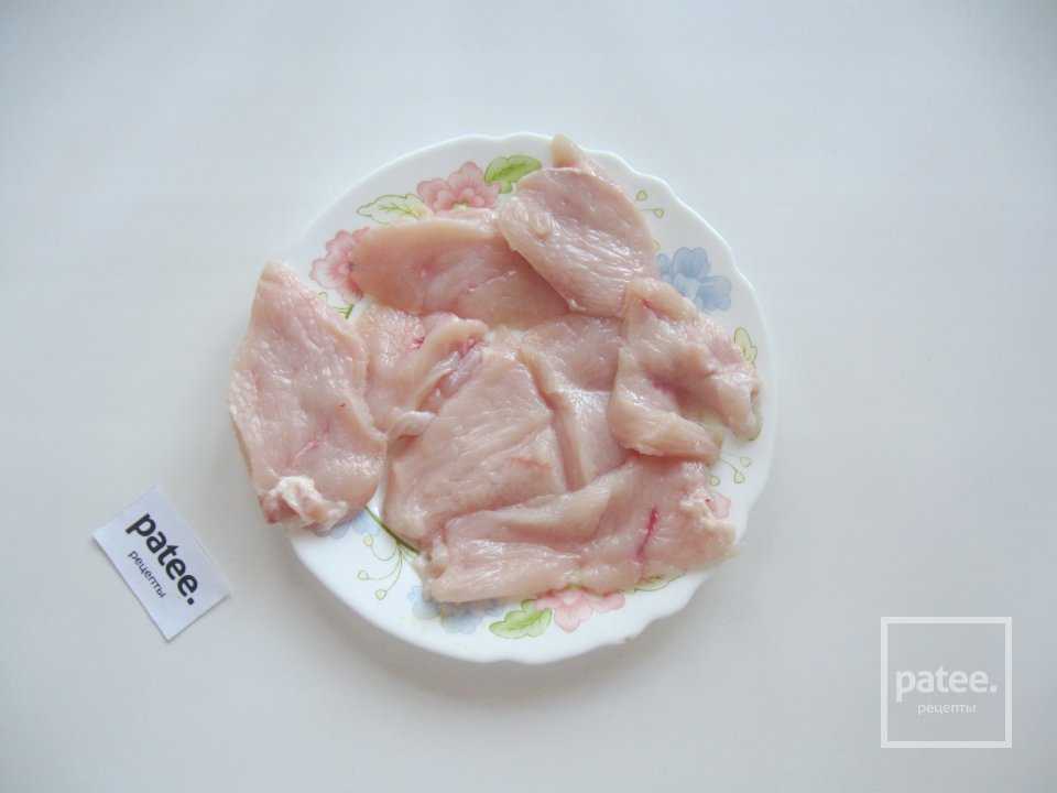 - Грудку хорошо промываем, удаляем пленки, жилки и хрящики. Нарезаем на небольшие куски и пропускаем через мясорубку, либо же изрубаем острым ножом максимально мелко.