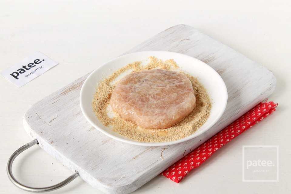 Процедуру можно повторить дважды, а то и трижды, в зависимости от желаемой толщины корочки из панировки. Готовые шницели выложите на сковороду.