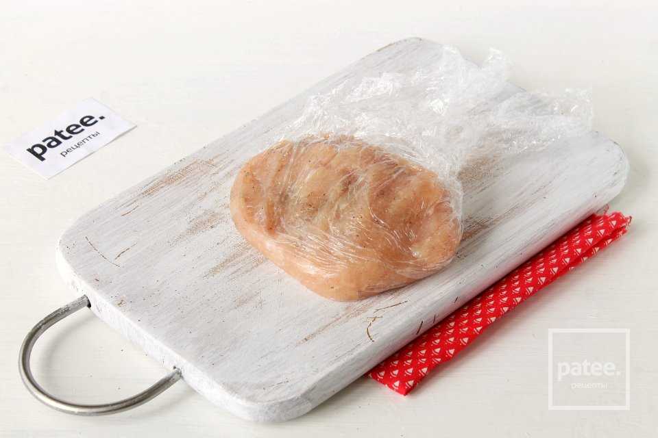 Чтобы филе было нежнее, его можно слегка отбить через пищевую пленку. Это вовсе не обязательное условие для приготовления шницеля и зависит от качества мяса и возраста курицы.