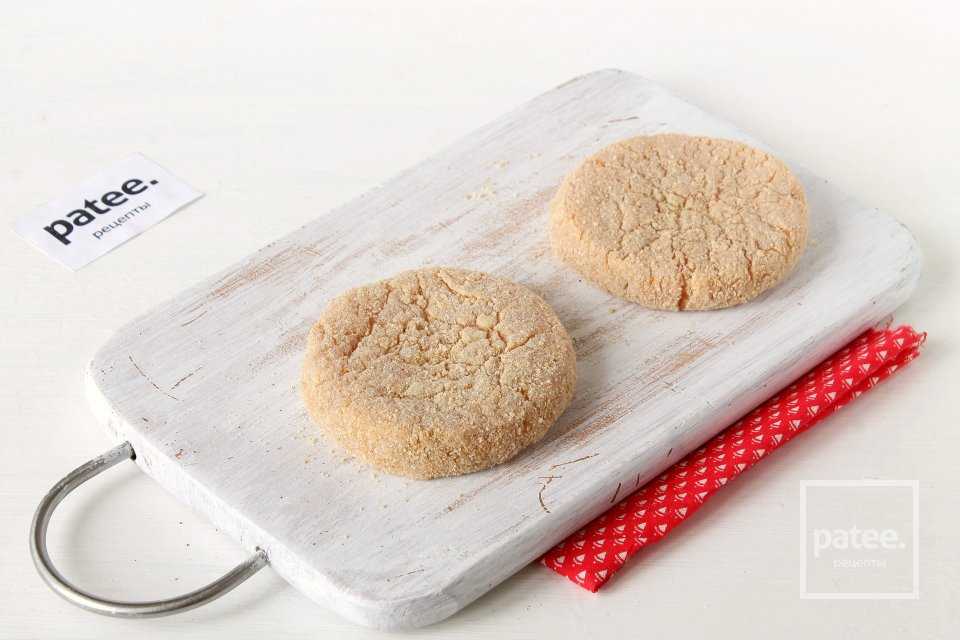 Делим приправленный и пластичный фарш на три равные части, каждую придавливаем круглой лепешкой, поочередно обсыпаем в муке — покрываем со всех сторон.